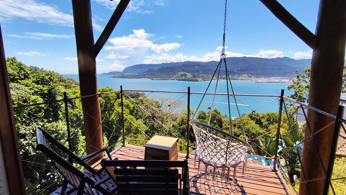 Notre Instagram @chalecantodamata Chalet de charme, situé dans une propriété calme, avec une intimité totale pour les voyageurs. Il dispose d'un barbecue et d'un bain à remous exclusifs, d'une salle de bain complète et d'une chambre avec un lit king-size, ainsi que d'un canapé-lit pour deux personnes supplémentaires. Situé dans le quartier de São Francisco, à São Sebastião, le chalet offre une vue imprenable sur la mer, parfaite pour ceux qui recherchent le confort, le contact avec la nature et des moments de repos sur la côte nord de São Paulo.