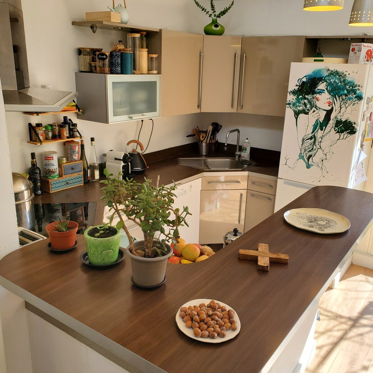 Appartement 2 pièces de 33 m2 refait à neuf dans le prolongement de notre maison dans un quartier résidentiel sur les hauteurs de Rouen, proche de tous commerces et d'un arrêt de bus ( Fast 1 arrêt Parc Andersen ). Très calme car donnant sur une cour. Parking possible juste devant l'appartement. Salon, kitchenette et salle de bains en Rdc et chambre à l'étage sous les combles. ATTENTION : Supplément de 15 € si vous utilisez le canapé-lit sauf si vous apportez votre duvet. WE SPEAK ENGLISH !