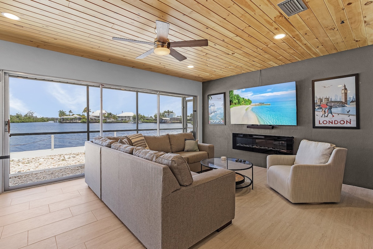 Ce pittoresque Airbnb est un joyau caché niché le long d'un canal, à une minute en bateau de la rivière Caloosahatchee. Le salon, baigné de lumière naturelle, est parfait pour profiter de la vue panoramique. La chambre spacieuse dispose d'un lit king size, assurant une nuit de repos heureux. La cuisine complète est équipée de tous les appareils modernes. Proche de Sanibel et Fort Myers Beach. Apportez votre bateau et amarrez-le sur la digue, prêt à prendre la mer quand votre cœur le désire. Réservez maintenant : votre paradis côtier vous attend !