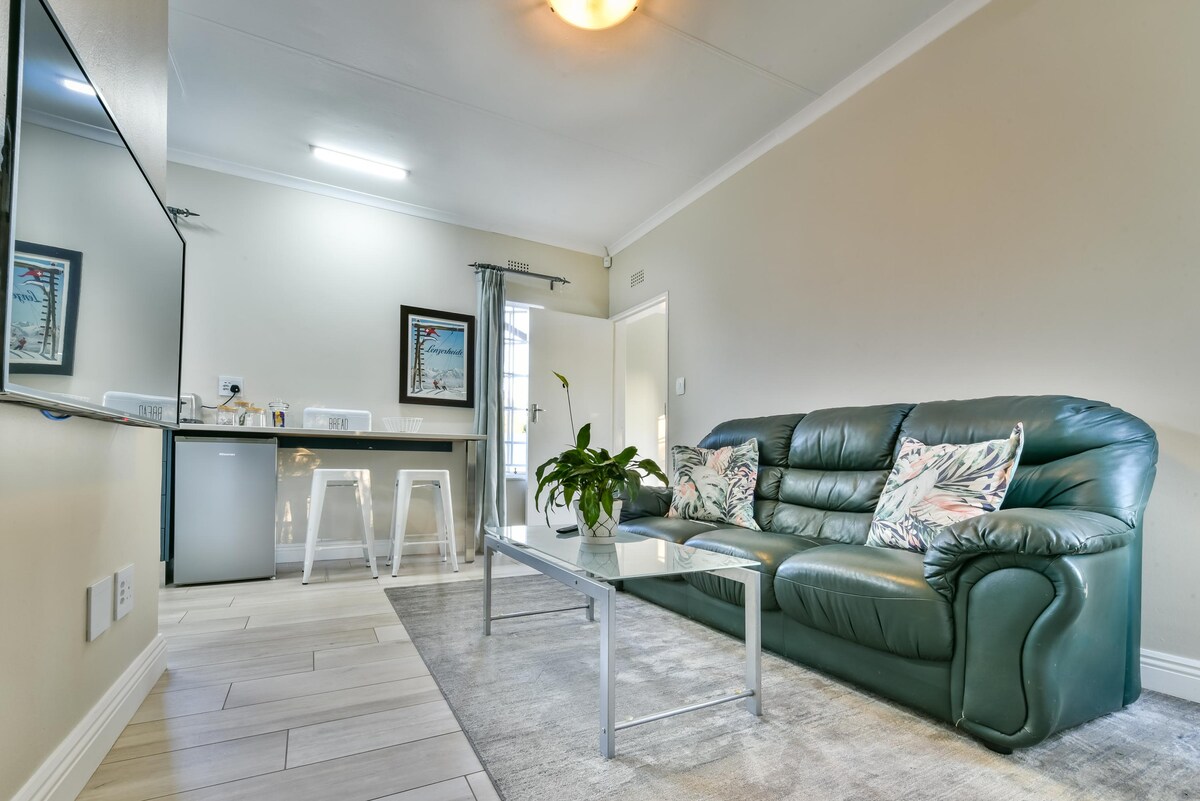 Une suite très confortable située à Brackendowns Alberton, idéale pour un couple ou une personne seule. Avec sa propre entrée privée et un parking sécurisé couvert. Nous avons installé le solaire, donc nous ne sommes pas affectés par les délestages. Une station de thé et de café et un mini-réfrigérateur sont fournis dans la suite. Télévision avec Netflix. Beaucoup d'espace dans les placards. La salle de bain attenante dispose d'une douche, d'un lavabo et de toilettes. Veuillez noter qu'il ne s'agit pas d'un établissement indépendant, il n'y a pas d'installations de cuisson.