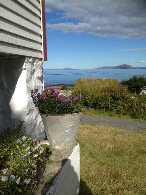 Koselig hytte nær sjøen,utsikt til fjell og fjord.