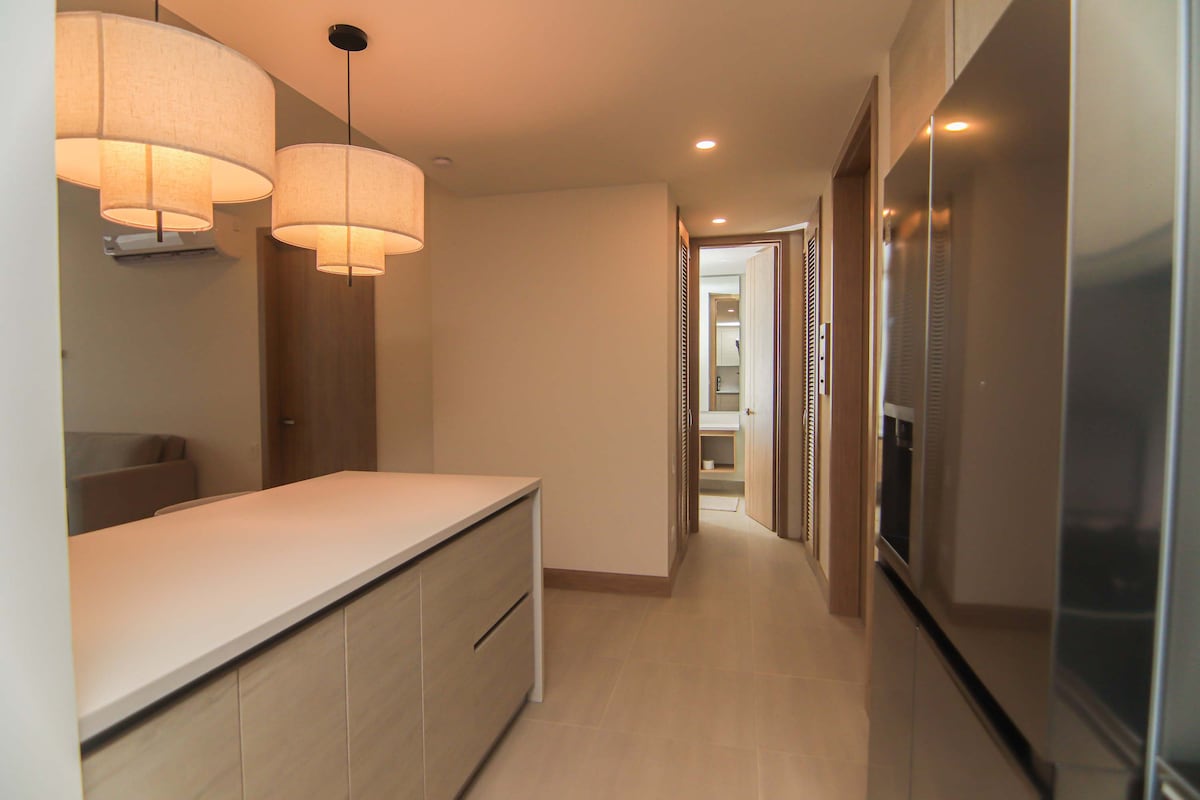 Bienvenue à Alta Mar Beach Front Apartment, un espace conçu pour ceux qui veulent vivre Carthagène avec la mer comme protagoniste. Situé en face de la plage, cet appartement vous permet de profiter de la brise des Caraïbes et d'une vue imprenable sur l'océan dès votre arrivée. L'appartement dispose d'ambiances modernes, de deux chambres confortables, d'un salon spacieux et d'une cuisine équipée, offrant tout le confort d'une maison face à la mer : les Caraïbes face à vos yeux.