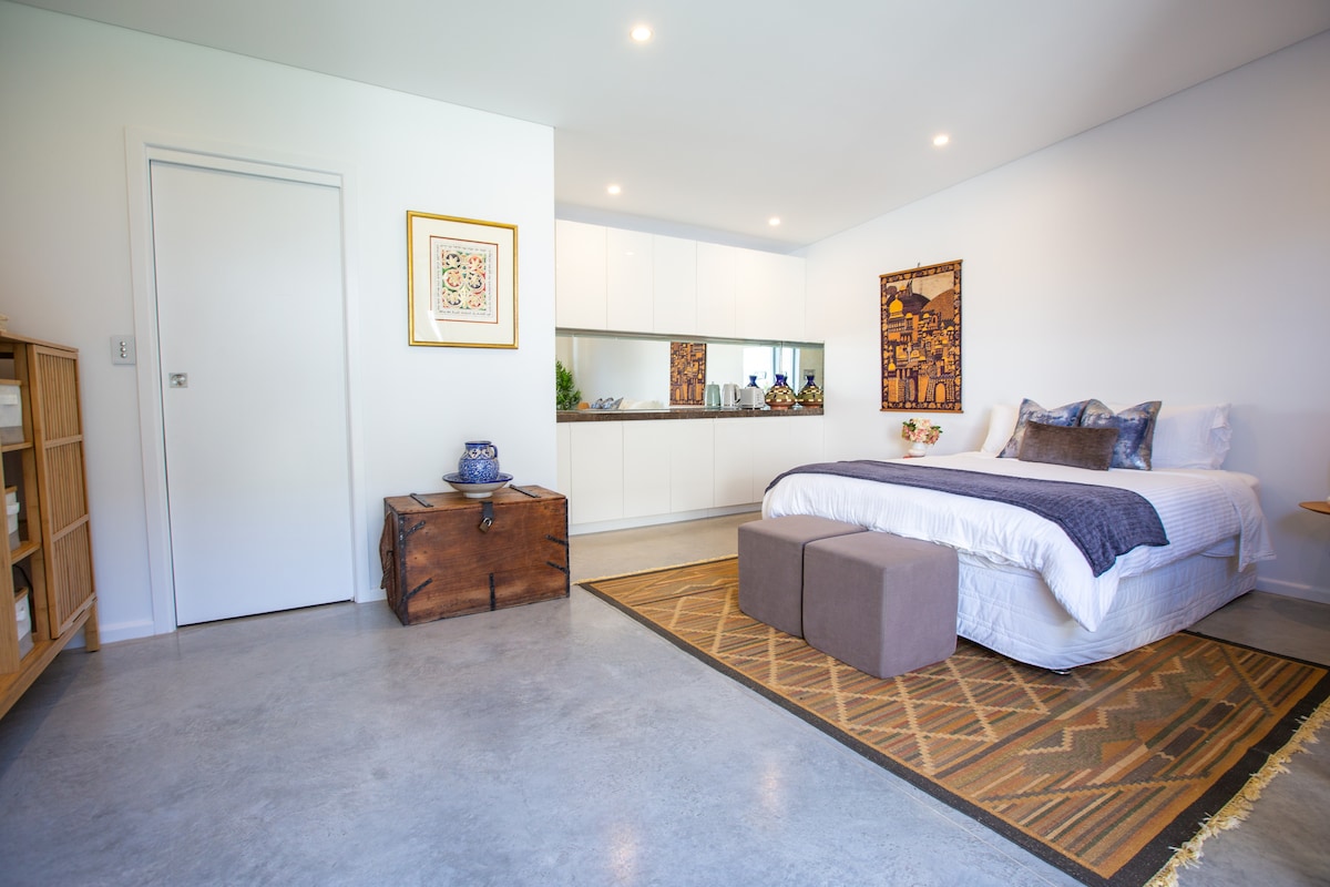 Profitez de ce studio élégant et central situé à quelques pas de la plage de Bondi. Vous serez sur le sable en cinq minutes en profitant du soleil et du surf. Des cafés et des restaurants sont également à proximité, ainsi que des options de transport pratiques pour Bondi Junction ou la ville à seulement deux minutes. Le studio avec arrivée autonome est entièrement privé. Il est proche, mais détaché de la maison. Il est composé d'une chambre avec lit queen, salle de bain/douche/toilette et lave-linge, kitchenette et espace extérieur relaxant.
