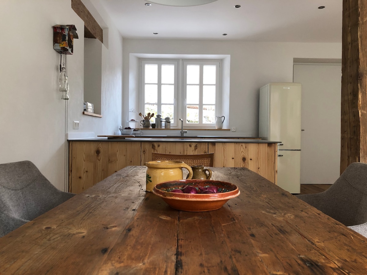 Petit déjeuner sous le pommier ou une soirée devant la cheminée – cette maison originale le permet. Grâce aux grandes fenêtres, on a une vue magnifique sur les Alpes suisses. Et si vous voulez faire le plein de soleil, installez-vous confortablement sur la terrasse ou dans le jardin. Avec un poêle suédois bien chauffé. Shopping dans le Waldshut historique avec de beaux cafés et restaurants. Auberges traditionnelles avec des produits locaux dans les environs immédiats. Des villes comme Zurich ou Fribourg sont idéales pour une excursion d'une journée.