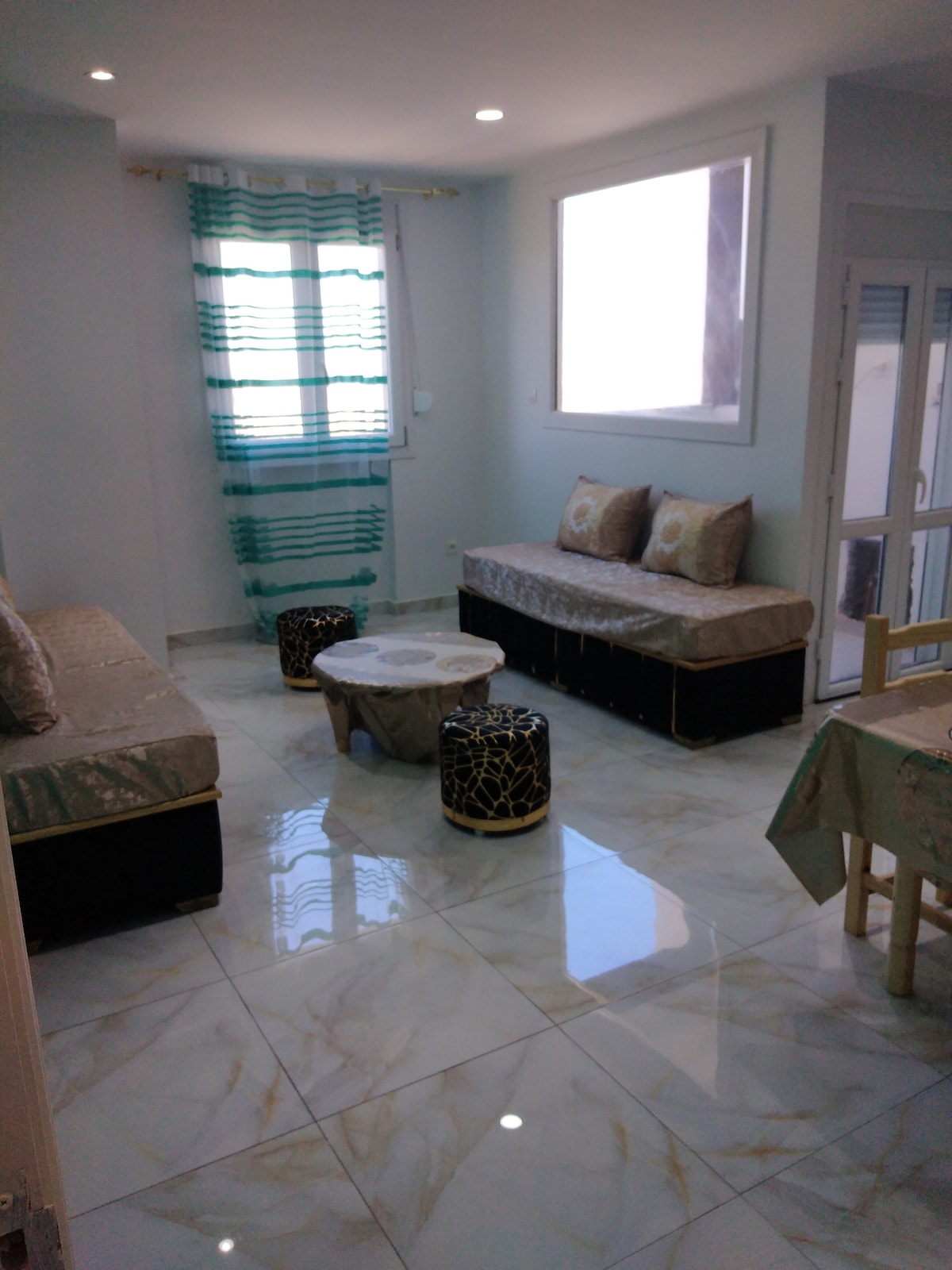 Créez des souvenirs dans ce logement unique et familial. Bel appartement F4 de 100m2 avec 2 salons, 2 chambres, cuisine équipée, wifi, 2 télévisions avec chaîne Arabe et française + Netflix disponible pour votre plaisir, climatisation, chauffage et eau chaude avec balcon et vue sur mer. Pouvant accueillir 5 personnes. L’appartement se situe à 1 km de l’arrêt du tramway et à 10 minutes de l’aéroport. Un appartement luxueux et familial pour vous détendre et passer un agréable séjour sur Alger.