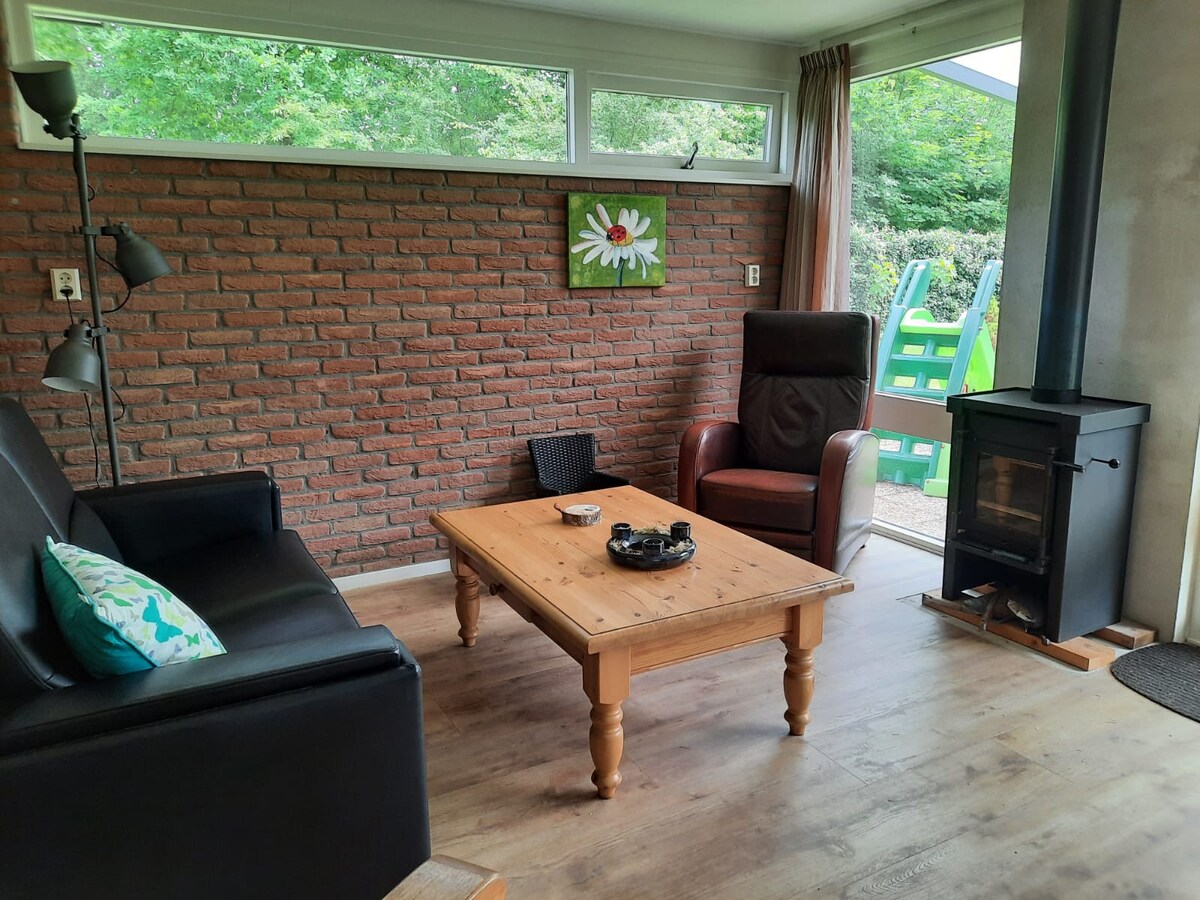 Sfeervolle bungalow in Drentse natuur bij zwemmeer