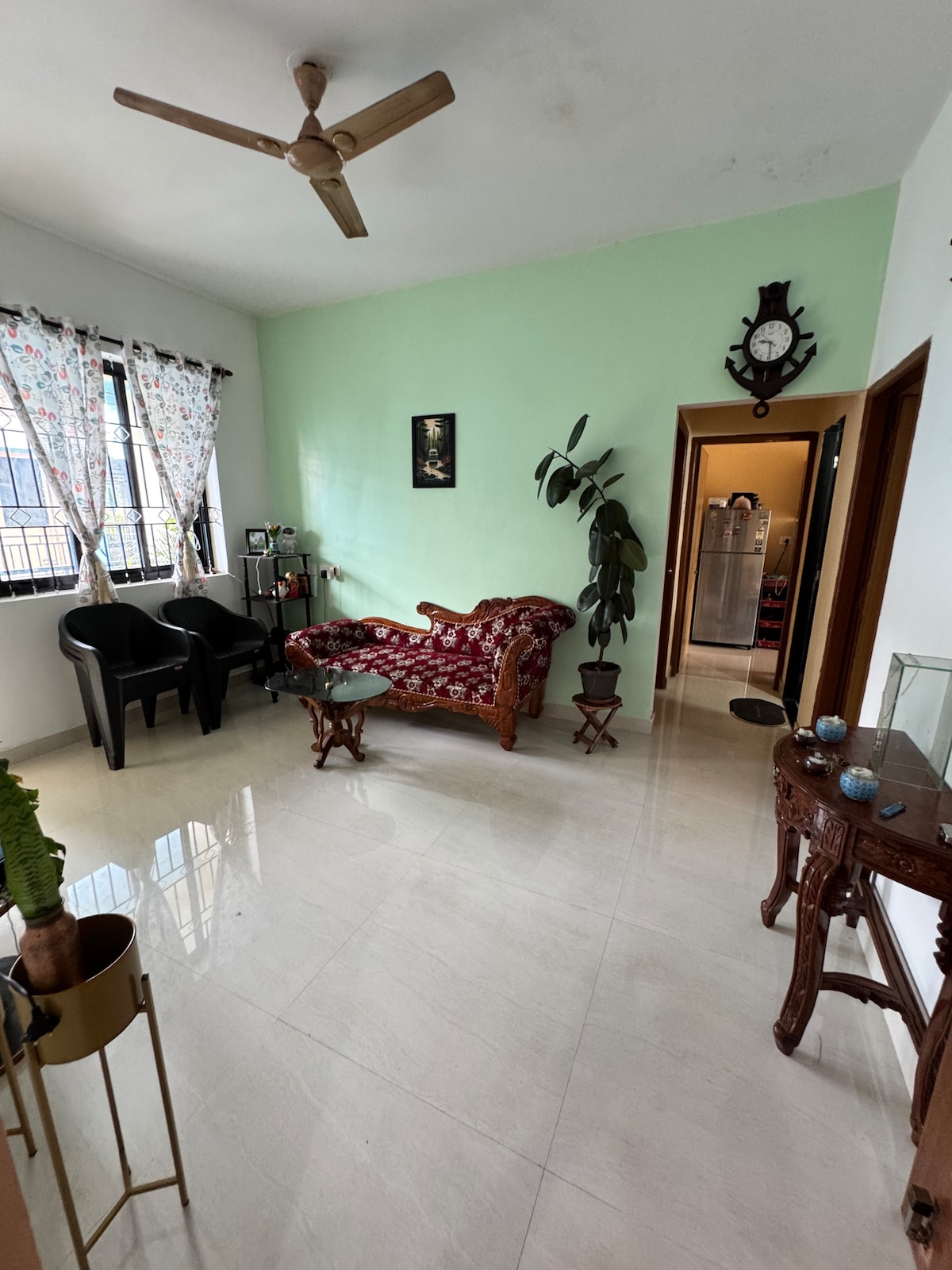 Refuge paisible à Navelim près du Blasco Executive Centre. À seulement 5 minutes de la gare de Margao, mais tranquillement nichée loin de la vie urbaine. Entouré d'une végétation luxuriante et d'une vue sur les montagnes. Moderne 1BHK avec un salon confortable, une chambre confortable, une salle de bain propre et une cuisine entièrement équipée avec cuisinière à induction. Idéal pour les couples ou les familles. Nous nous ferons un plaisir de partager des références fiables pour la location de vélos et de voitures si nécessaire. Profitez de couchers de soleil calmes et du confort authentique de Goa au Blasco Majestic Estates.