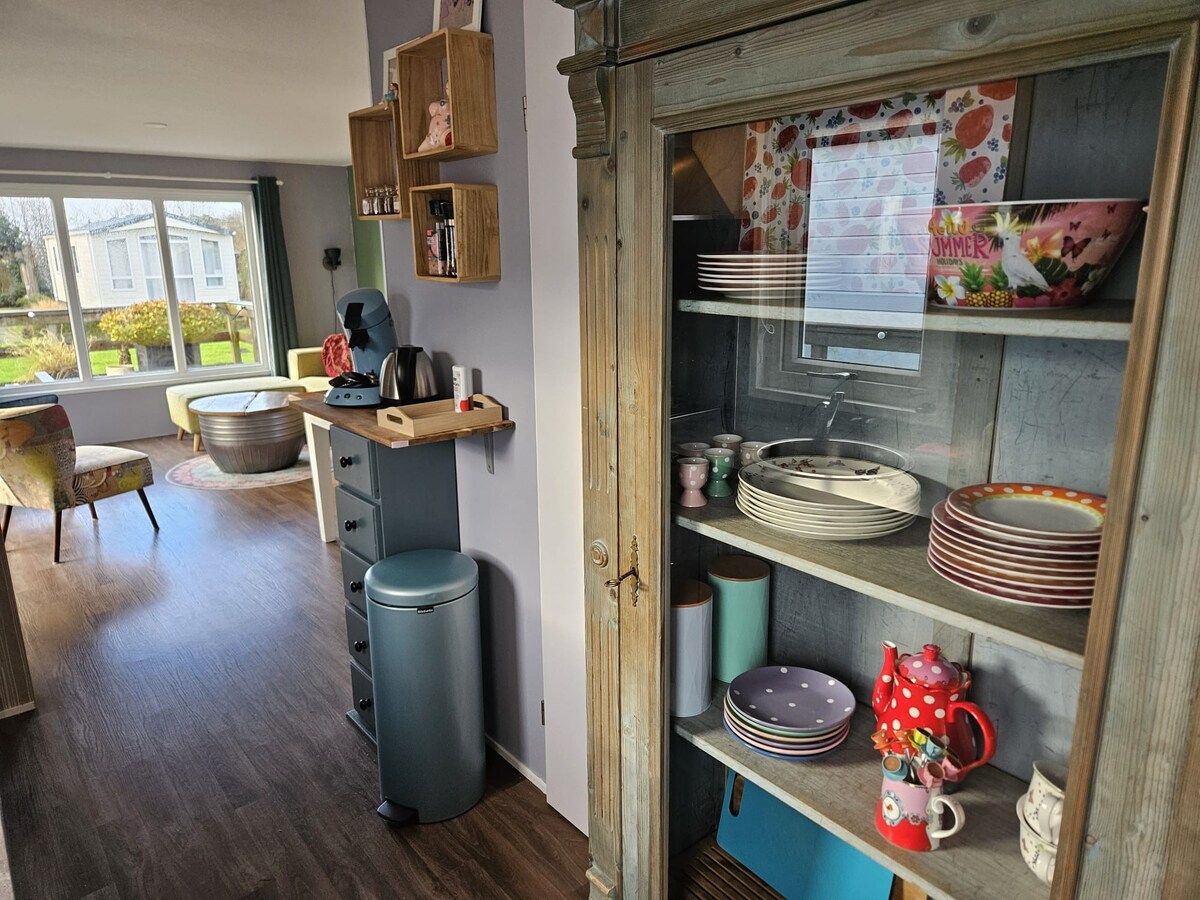 Charmant & Luxe Tiny House. Détente sur l'eau de la réserve naturelle unique des îles Rijk der Duizend Dormez dans un lit king size 180x220 avec un excellent matelas. Randonnée, vélo, plage, forêt, paddle, navigation de plaisance, kayak ou vélo de montagne. La plus haute dune de Schoorl. Restaurants accessibles à pied ou profitant d'une cheminée sous la véranda a/h eau. Télévision connectée, Netflix et Wi-Fi Nespresso, thé et bonbons Amsterdam, Alkmaar, Bergen au bord de la mer, Schoorl, Egmond, Callantsoog Sleepy, Ruby