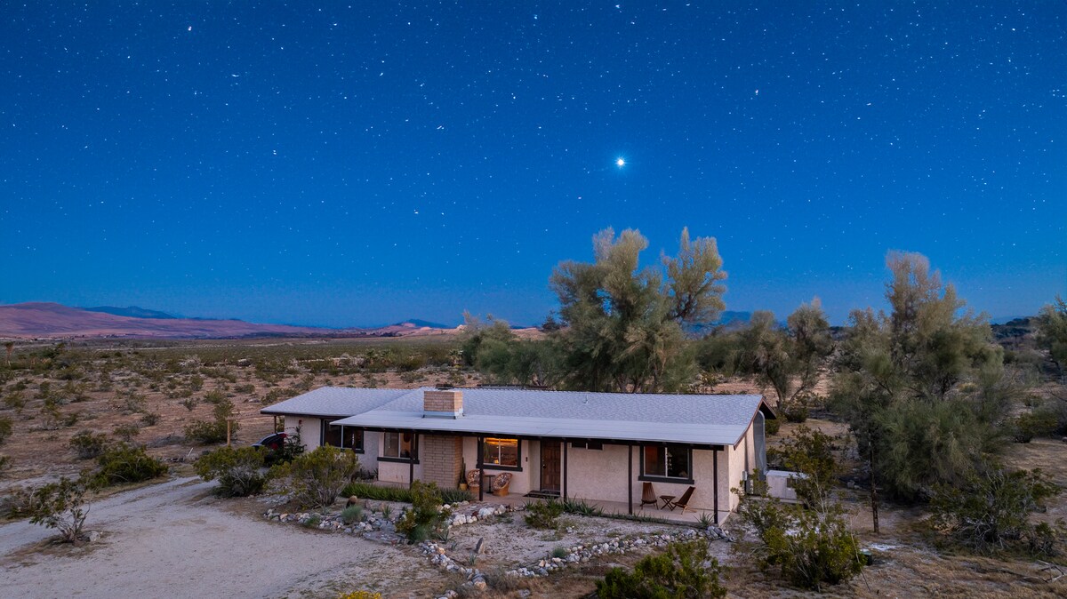 *MISE À JOUR 1/9/26 - LA FLORAISON D'HIVER EST LÀ, VOIR LES PHOTOS !* Paisible, calme, avec une grande cour clôturée pour plus d'intimité et une vue majestueuse sur le désert et les montagnes environnants. Observez les étoiles de premier ordre ! Charbon + gaz, chaises longues, foyer et patio couvert pour choisir votre endroit idéal pour vous détendre. La maison est idéalement située à seulement 2 miles du centre de Borrego Springs dans un cul-de-sac calme. Profitez de tout ce que le désert a à vous offrir tout en séjournant dans cet endroit confortable !