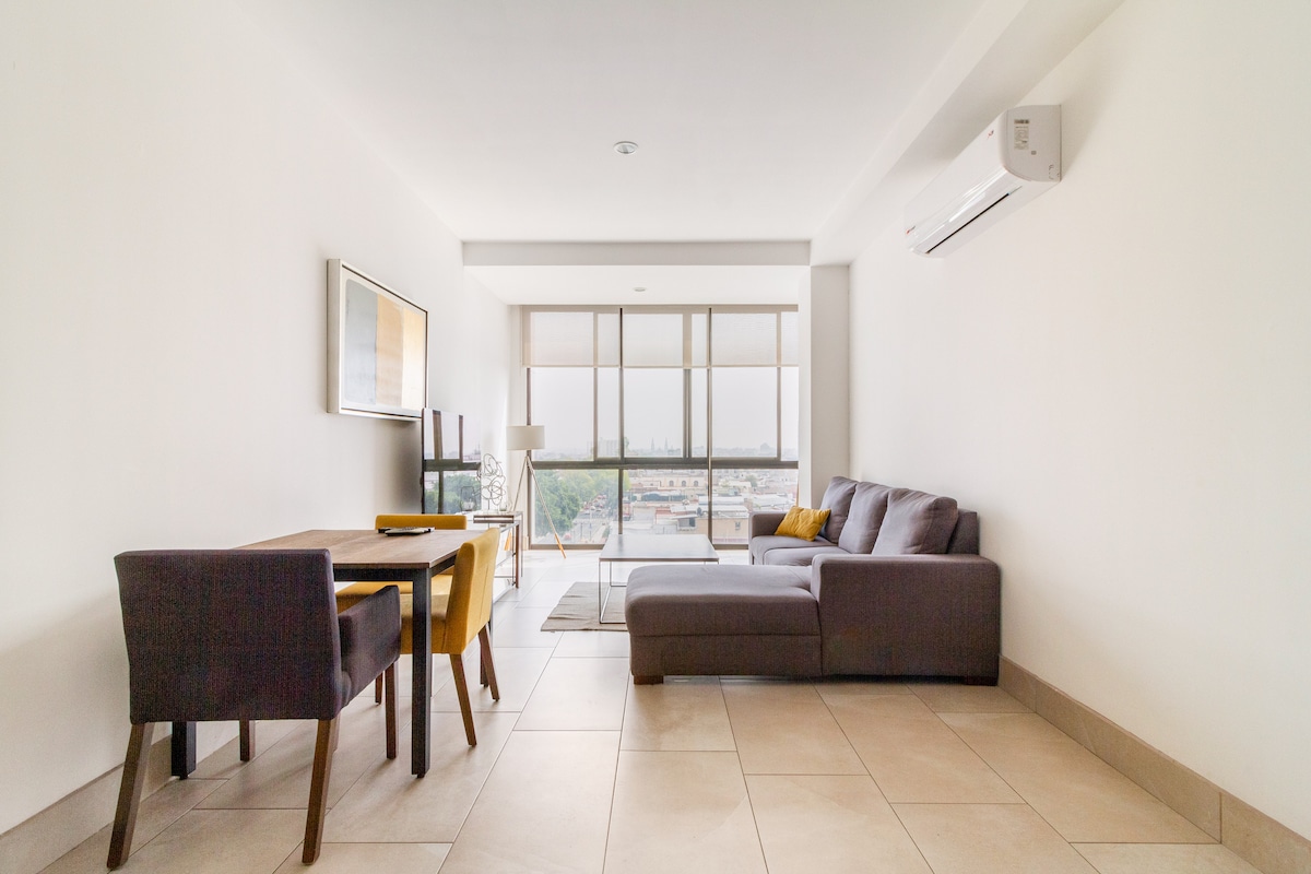 L'appartement dispose de la climatisation dans la CHAMBRE PRINCIPALE. Le service est contracté séparément. Coût supplémentaire de 99,00 $ par jour. Détendez-vous dans cet espace calme et élégant. Entièrement neuf avec deux chambres. Spacieux pour 4 personnes. Avec option pour un 5ème [avec coût supplémentaire]. Avec des équipements [salle de sport, ludothèque, espace de travail, cinéma]. Emplacement idéal. Dans le sud de la ville. À 5 minutes des places et des supermarchés. Nous rendrons votre séjour agréable.