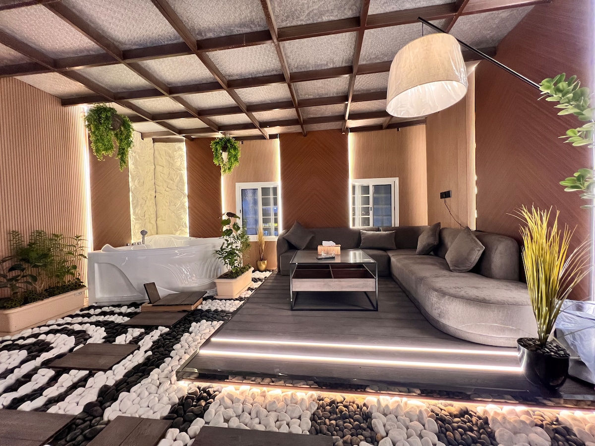 Un appartement moderne conçu pour un séjour exceptionnel, situé dans l'un des plus beaux quartiers de Riyad avec une vue imprenable sur KAFD. Il dispose d'un coin salon extérieur avec un écran et un projecteur pour des soirées agréables. Pour votre confort, le lit comprend une couche supplémentaire de 14 cm de haute qualité. « Nous proposons également des services de coordination d'événements pour des occasions spéciales (y compris des gâteaux et des accessoires) moyennant des frais supplémentaires et sur réservation préalable, pour une expérience inoubliable. »