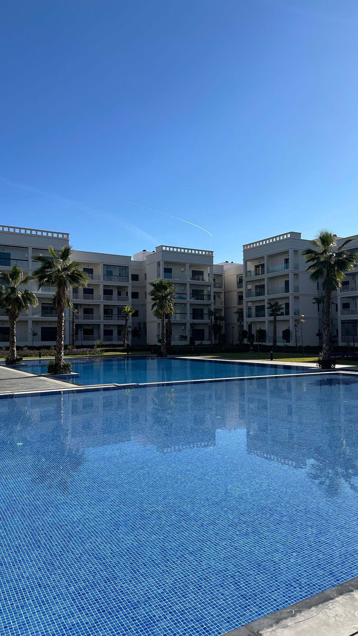 Découvrez notre luxueux appartement à Bouznika Costabeach parfait pour les familles, où les voyageurs d'affaires. Ce logement moderne de 2 chambres comprend un salon élégant avec trois télévisions, Wi-Fi fibre optique, un espace de travail et une cuisine entièrement équipée. Profitez des deux terrasses, de la climatisation et des commodités de la résidence avec piscine, parking et sécurité 24h/24. À quelques pas de la plage et des attractions locales. Réservez pour un séjour exceptionnel !