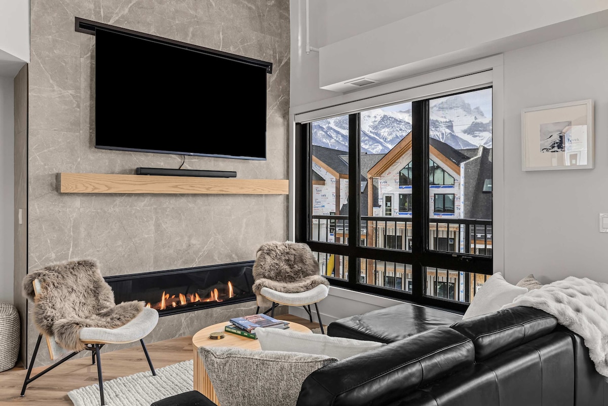 NOUVEAU ! 2 chambres • 2 salles de bains • Capacité d’accueil : 4 personnes • Penthouse au 4e étage • Vues imprenables Bienvenue à Elevation Hydeaway, un superbe refuge de montagne situé au dernier étage, conçu pour offrir une vue imprenable sur les sommets de la vallée de la Bow. Conçu avec soin, avec des finitions modernes et haut de gamme et une atmosphère ouverte et aérée, ce logement est parfait pour les voyageurs à la recherche de confort, d’élégance et d’un cadre inoubliable. Que vous soyez ici pour l’aventure ou le repos, Elevation Hydeaway vous offre un havre de paix au-dessus de tout.
