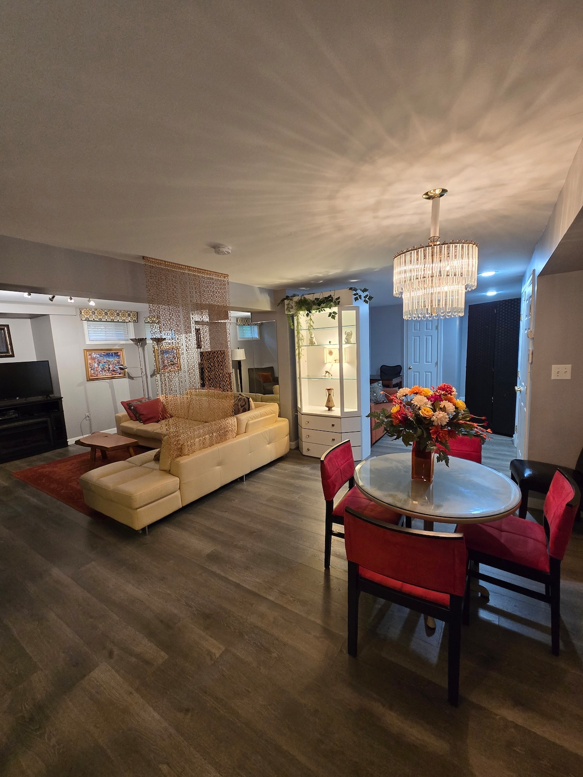 Sous-sol entièrement rénové et mis à jour avec un ensemble complet de fenêtres et de lumière du soleil. La maison est dans un quartier très agréable et sûr. Sous-sol accessible à pied avec entrée privée. Beaucoup de stationnement. Non fumeur. Tous les services publics et le Wi-Fi sont inclus. • Superficie totale : 800 pieds carrés. • Une chambre avec placard ; • Salle de bain complète • Entièrement meublé ; • Cuisine • Coin repas • Sous-sol accessible à pied – au-dessus du sol (entrée privée) • Pas de four • Pas de lave-vaisselle • Pas de lave-linge ni de sèche-linge • Beaucoup de stationnement ; • Interdiction de fumer.