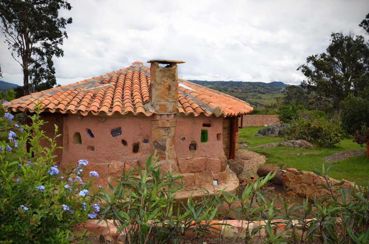 Reposez-vous, détendez-vous et respirez l'air frais dans notre cabane faite maison. Nous l'avons construite avec amour, avec l'aide d'amis sur une période de 3 ans. Les gens nous disent qu'il y a quelque chose de magique à être à l'intérieur d'une maison en terre entourée de rochers géants vieux d'un million d'années. La vue principale est celle d'Iguaque, la montagne sacrée des peuples autochtones locaux.