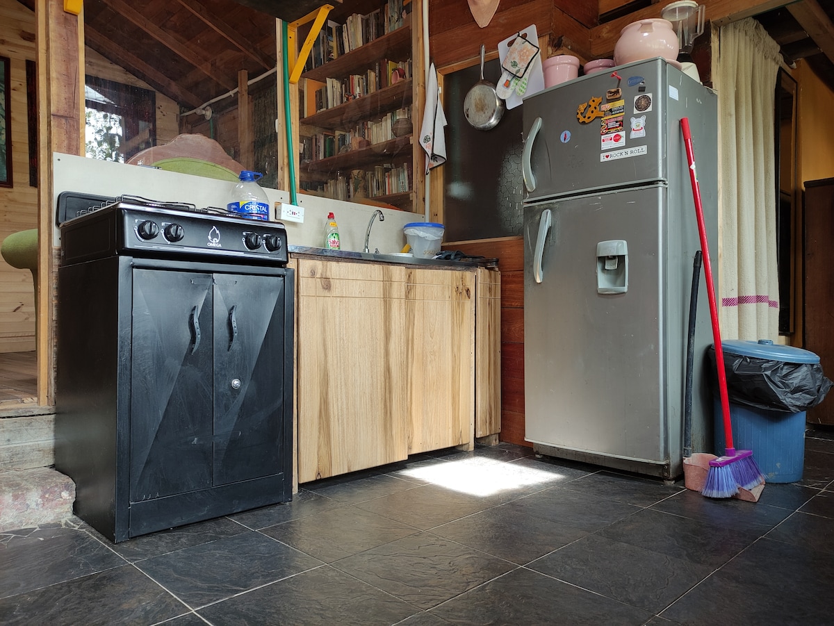 Notre cabane est un espace confortable et indépendant de notre résidence qui se trouve à côté. Il dispose d'un accès avec des escaliers à travers un jardin plein de fleurs et d'arbres que nous avons plantés au fil des ans, pour la conservation des espèces indigènes. Nos hôtes bénéficieront d'un espace de repos et s'ils le souhaitent, ils pourront quitter notre terrain pour faire des promenades ou faire du vélo s'ils souhaitent l'apporter.