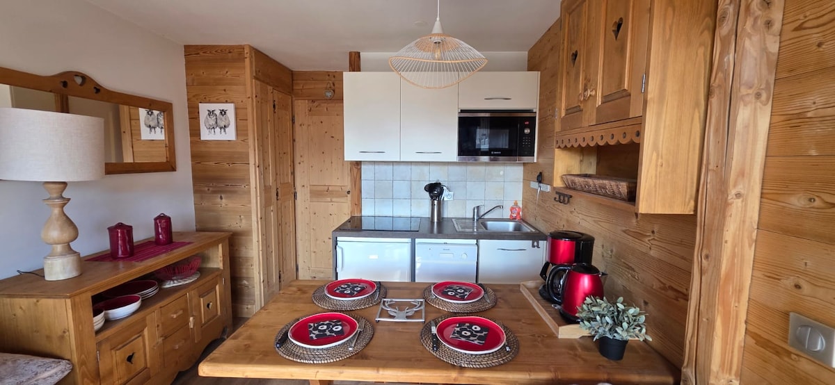 Studio cabine bien équipé, ski aux pieds, WiFi