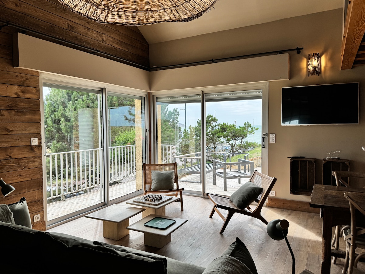 Vue mer et accès direct plage. Épurée, la cabane vous offrira des moments (et des couleurs) d'une beauté rare pour vous ressourcer seul, en famille ou entre amis et profiter: randonnée, gastronomie, kite surf, parapente, pêche ou simplement vivre la nature, le rythme des marées et le repos. Il parait qu'après avoir dormi dans des draps en lin on ne s'en passe plus. Sa luminosité et son isolation phonique la rendent particulièrement très agréable aussi en plein hiver.