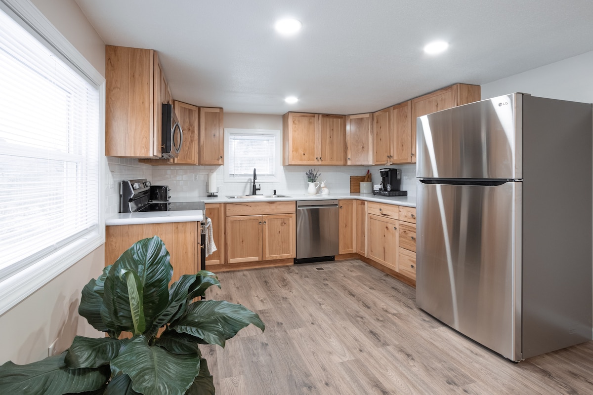 Niché en lisière de forêt et portant le nom de notre chouette résidente, Hooting Haus est un chalet de style européen situé à proximité de toutes les activités proposées par Penn State. Le charme rustique de la cuisine gastronomique se caractérise par un îlot en zinc, un plan de travail en billot et un mur en pierre naturelle. Recevez vos invités autour de la table en pin fabriquée par des artisans tout en dînant à côté de la cheminée ancienne. Détendez-vous dans le jacuzzi, puis terminez la soirée en partageant des histoires sous un ciel d’encre, réunis autour du brasero, avec un grog réconfortant ou une tasse de chocolat chaud onctueux.