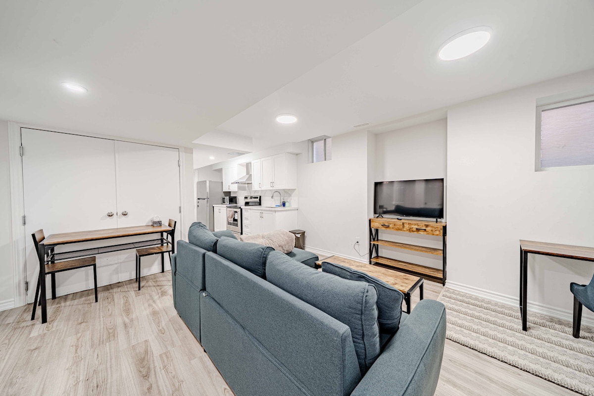 Profitez d'un séjour élégant et paisible dans ce logement de plain-pied d'une chambre situé au centre, parfait pour les voyageurs d'affaires et d'agrément. Avec votre entrée privée, votre parking et tous les éléments essentiels, c'est votre maison idéale loin de chez vous. Les caractéristiques comprennent une cuisine complète, une salle de bain, Internet, une télévision intelligente, un lit Queen Size et un canapé-lit, ainsi qu'un espace de travail fonctionnel. À quelques pas de FreshCo, Walmart, des restaurants et des services. À quelques minutes de Vaughan Mills, de Canada's Wonderland, de l'hôpital Cortellucci et des transports en commun.