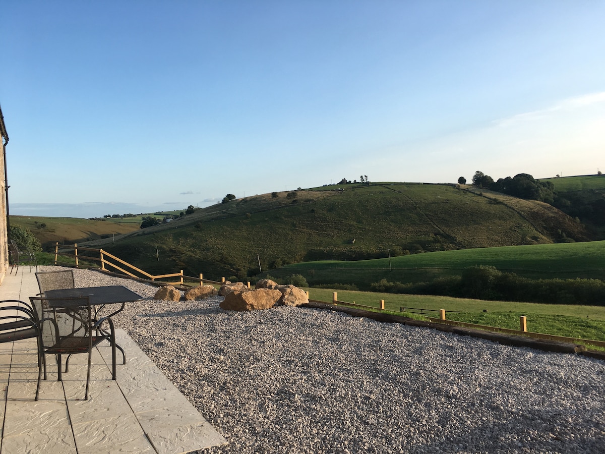 Dernier étage converti de la dépendance de la grange. L'eau de source naturelle filtrée alimente la grange. Petit patio, barbecue au gaz et jardin. Situé sur un sentier pédestre/un chemin de halage donnant un accès immédiat aux sentiers de marche/randonnée/vélo dans le High Peak. Vue sur la vallée vers Chrome Hill. Les moutons paissent dans les champs environnants. À 3 miles du marché historique de Buxton/ville thermale. Festival international organisé chaque année. Vie nocturne, culture et bons restaurants ainsi que l'Opéra et le Centre des arts dans les jardins du Pavillon.