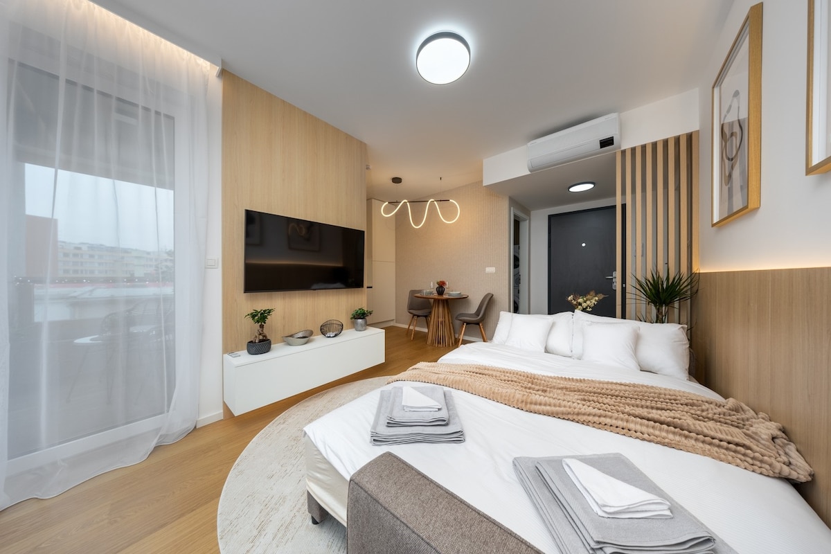- Appartement élégant et moderne sur Metodova 3, juste à côté du centre commercial - Climatisation, connexion Wi-Fi rapide et télévision connectée pour un confort maximal - Parking privé gratuit directement dans l'immeuble - Cuisine entièrement équipée avec café et thé gratuits - À quelques pas du centre commercial, des restaurants, des installations de bien-être et de remise en forme - À distance de marche du stade de hockey sur glace et du stade de football - Idéal pour les voyageurs d'affaires, les couples et les séjours d'un week-end