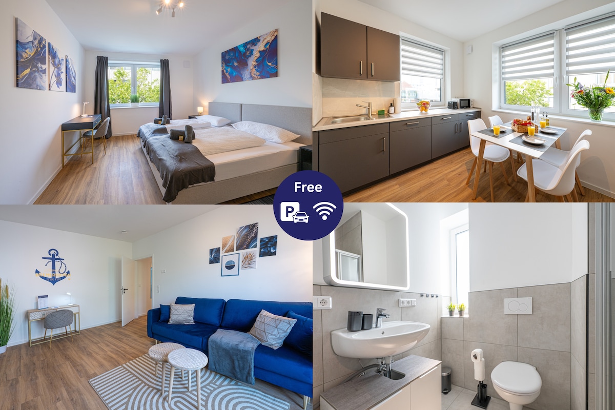 Stilvolles Apartment in ruhiger Lage nahe Fischereihafen. Nur wenige Gehminuten zu Restaurants, Läden und Schiffen. Voll ausgestattet inkl. Klimaanlage für erholsame Nächte. Genieße deinen Kaffee auf dem sonnigen Balkon mit Blick ins Grüne. Top-Lage für Ausflüge: Klimahaus, Auswandererhaus und Zoo am Meer sind in 10 Min. mit dem Auto erreichbar. Ideal für Paare, Alleinreisende und Entdecker!