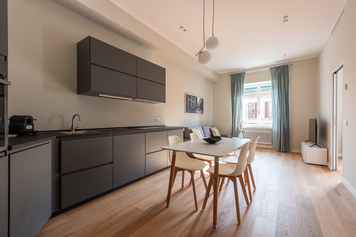 Vivez en plein centre de Milan dans notre appartement élégant et spacieux (80 m²/860 pieds carrés) situé dans un bâtiment milanais historique traditionnel. L'appartement dispose de tout le confort tel que la climatisation, deux salles de bains avec douches, lave-linge + sèche-linge, une cuisine entièrement équipée, une connexion Internet ultra-rapide et une télévision LED avec Netflix. À quelques minutes des principaux sites de Milan, l'appartement est exceptionnellement calme car il est situé dans la partie intérieure d'un bâtiment historique (deuxième étage sans ascenseur).