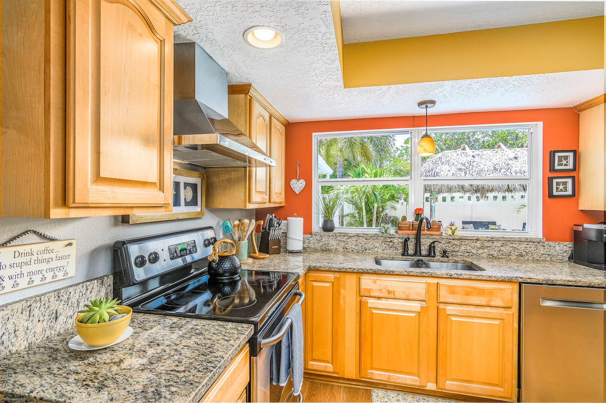 Bienvenue dans une oasis privée au ❤️ de la Space Coast de Floride, parfaite pour l'aventure ou simplement pour se détendre ! 🌺 Évadez-vous au paradis : vous y trouverez une retraite luxuriante dans l'arrière-cour avec des palmiers tropicaux et des fleurs vibrantes, créant le décor pour des journées ensoleillées parfaites. Vous apprécierez les chaises Adirondack, les chaises longues et le barbecue pour une expérience en plein air ultime. 🏊♀️🌴 Les 3 chambres ont des lits de luxe avec des matelas extrêmement confortables. 🐕 Notre jardin clôturé est un havre de paix pour vos bébés à fourrure.