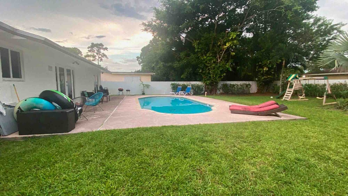 New kitchen! Big and comfortable tropical pool home, perfect for a family of 5 people. Fully furnished with really comfy sofas and beds so that the whole family can relax and spend some unforgettable days in Miami. The big pool and covered patio are the center of the house. There are 2 large bedrooms and 1 full bath. The bedroom share a jack&jill full bathroom. Note: Refundable Surgery Security deposit of $200 will be charged in advance.
