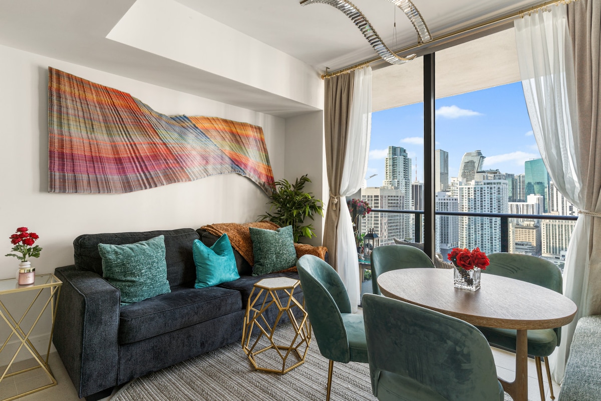 Sip coffee or enjoy Happy Hour over 27th-floor skyline views, then head downstairs for fresh juice and pancakes at the tropical buffet. This sleek 1BR in downtown’s newest luxury tower is steps from the waterfront, Kaseya Center, Bayside, and nightlife. End your day at the gym, spa, or with a toast from your wraparound balcony. Spacious, brand new, and offering ocean and city views for an unforgettable stay.