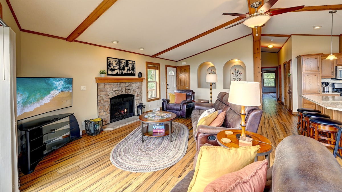 Évadez-vous des routines quotidiennes et rafraîchissez-vous au bord de la rivière Wisconsin dans votre retraite privée et paisible située près de Devil 's Lake, Cascade Ski & Devil' s Head Ski/Golf Resorts & WI Dells. Parfait pour les familles avec 9 lits, jacuzzi pour 8 personnes, 6 kayaks (de mai à octobre), ping-pong, baby-foot, fléchettes et jeux de plein air. Le design moderne et spacieux est rempli de lumière naturelle, de confort de luxe et de nouveaux meubles avec cuisine de chef, barbecue Weber, cheminée et cuisinière solo. Posez-nous des questions sur les îles River à proximité ou des excursions d'une journée pour skier/randonnée.