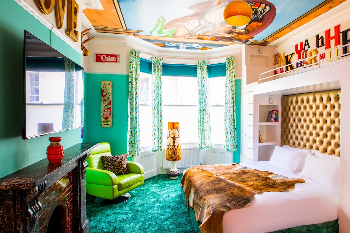 Dormez profondément sur du linge égyptien de luxe et un magnifique matelas à ressorts fait main, puis le matin, profitez du petit-déjeuner offert par la maison ; y compris des pains artisanaux ou des croissants frais, des fruits frais et du miel. Laissez-vous inspirer par les trouvailles vintage originales et excentriques tout autour de ce loft lumineux, avec sa banque d'immenses fenêtres Velux allant du sol au plafond. Notre maison est située dans une partie paisible de la charmante ville de Hove, nous sommes très proches de la plage (à seulement 7 minutes à pied !). Il y a aussi de très beaux cafés et pubs à proximité. Parfait pour une escapade d'un week-end à deux. Vous pouvez rejoindre le centre de Brighton en bus, ou si vous apportez vos vélos, un trajet de 15 minutes à vélo le long du front de mer. Nous nous sommes assurés que votre studio est entièrement indépendant avec tout ce dont les voyageurs auront besoin. Si vous souhaitez prendre votre petit déjeuner dans notre charmant jardin isolé, vous êtes les bienvenus. Faites-le nous savoir la veille et nous nous assurerons que tout est prêt pour vous. Nous sommes généralement ici et à votre disposition si vous avez besoin de nous, mais bien sûr, nous sommes plus qu'heureux si vous souhaitez rester entre vous. C'est votre week-end et nous voulons que vous passiez le meilleur séjour possible ! À sept minutes à pied de la plage, le quartier est calme et familial. Hove a de nombreux magasins indépendants, de charmants cafés extérieurs et de superbes pubs. Le centre de Brighton est très accessible par des bus fréquents, ou une agréable balade à vélo le long du front de mer. Les bus sont excellents ici. Fréquents et ils s'arrêtent aux deux extrémités de notre route. À 15 minutes de Brighton et à environ 40 minutes de Worthing. Notre gare la plus proche est à 10 minutes à pied, et la gare de Hove est à environ 25 minutes à pied de la maison. Nous avons deux chiens (un cockerpoo et un bearded collie très vieux) qui vivent dans la maison. Ils sont très doux et amicaux, mais nous veillons toujours à ce qu'ils ne dérangent pas nos voyageurs.