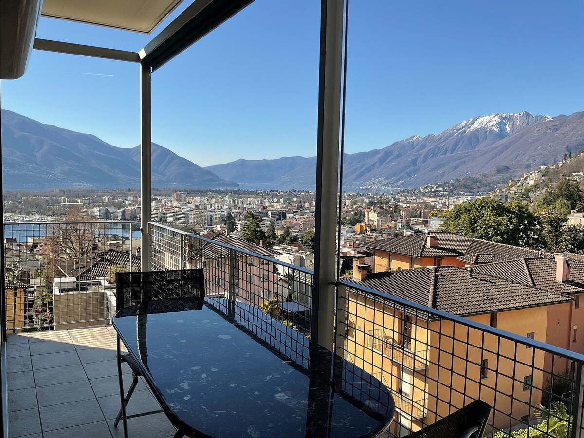 Studio avec une vue magnifique sur le Lago Maggiore et les montagnes environnantes. Il est situé dans un quartier très calme et pratique pour joindre Tenero, Locarno, la Valle Verzasca et ses environs. Départ pour des excursions en montagne directement depuis la maison. Le studio avec accès privé est accessible par un long escalier. Possibilité de garer la voiture dans des parkings publics situés à environ 15 minutes.vArrêt de bus accessible en 5 minutes à pieds. Gare de Tenero 20 min. à pieds.