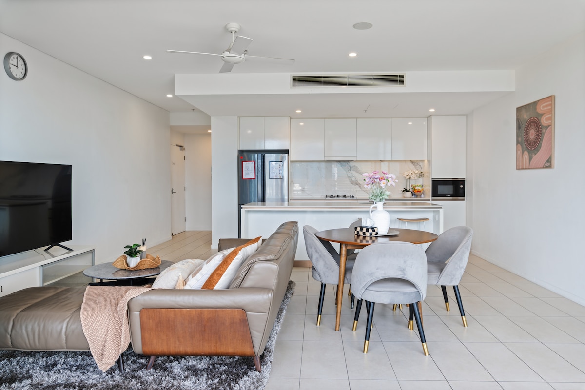 Profitez du café animé de Teneriffe et de la scène gastronomique de cet appartement paisible et central, avec des liaisons de transport faciles vers les centres culturels et artistiques du Queensland, la Gallery of Modern Art et le Powerhouse. Vous pouvez également vous rendre dans la salle de sport sur place, marcher le long de la rivière jusqu'à New Farm Park ou prendre l'un des célèbres RiverCat Ferries de Brisbane jusqu'à Howard Smith Wharf. Bien sûr, vous pouvez également vous asseoir au bord de la piscine, vous détendre et profiter de la fraîcheur sur votre propre balcon privé.