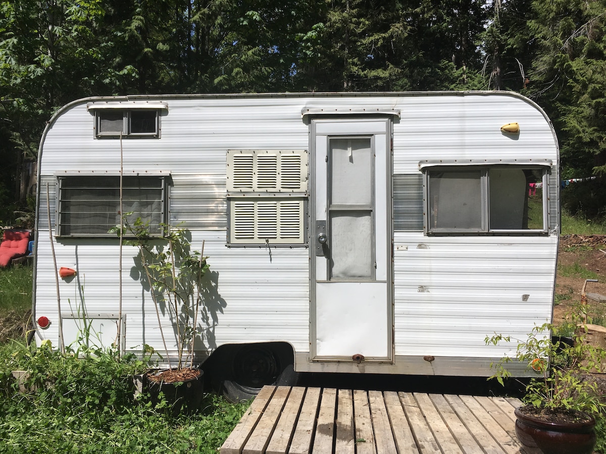Vous recherchez la tranquillité et l'intimité ? Installez-vous dans notre caravane Silverstreak vintage sur votre propre emplacement privé à notre ferme. Vous n'oublierez pas le cadre paisible de cette destination rustique. Nous avons récemment construit un solarium couvert avec une cheminée pour se détendre aussi. À 200 m d'une belle promenade sur la plage sur la broche. À plus de 20 min en voiture de la plupart des spots de surf de South Island ainsi que du début du sentier vers Juan de Fuca.