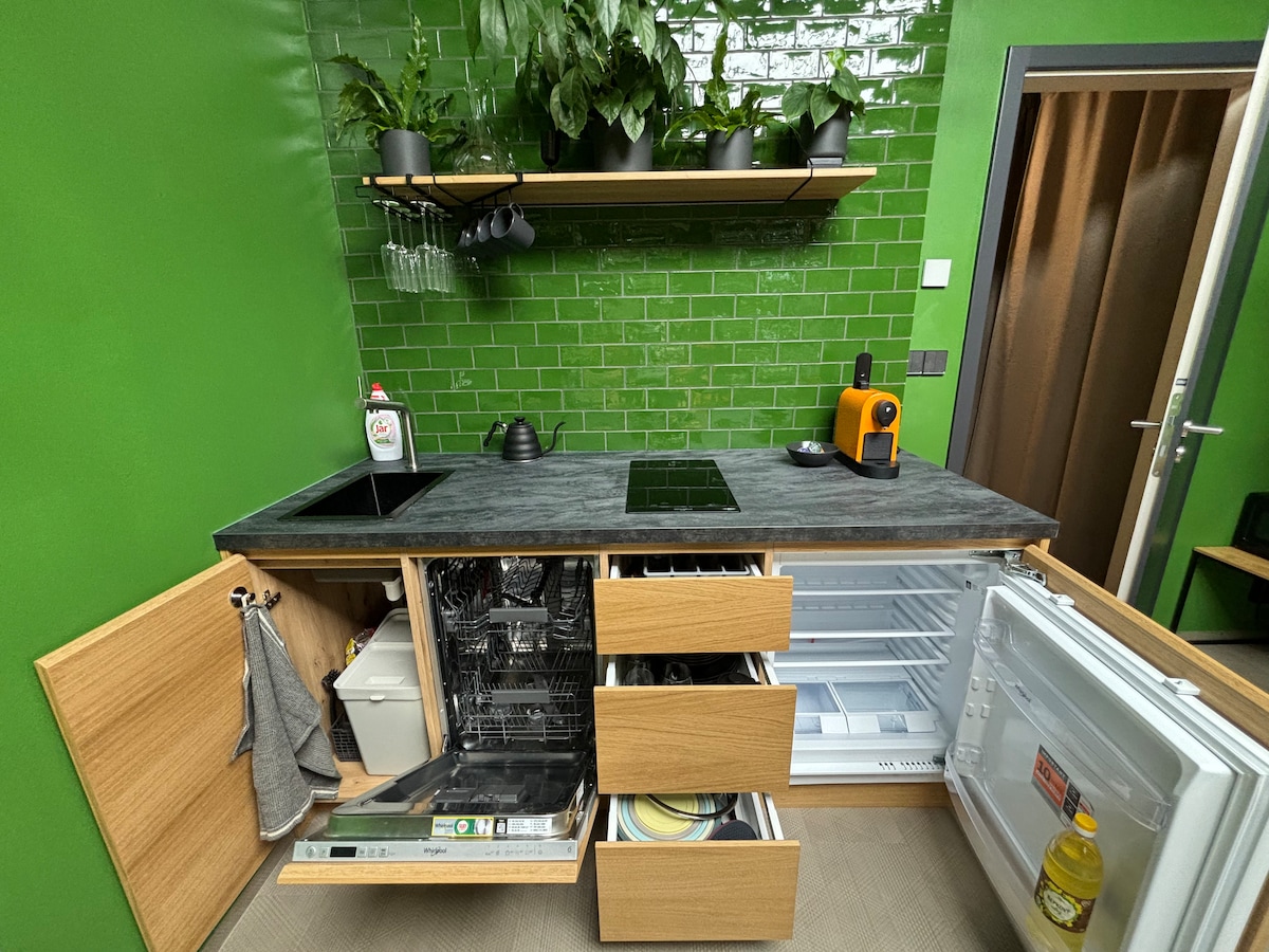 This studio apartment of 86 m² is located on the ground floor and features windows overlooking the garden. The apartment includes a private terrace, perfect for relaxation. It has its own entrance and is conveniently situated next to our quiet parking area, ensuring maximum comfort. Important notice: We’re sorry, but the hot tub in this apartment is temporarily out of service. Thank you for your understanding.
