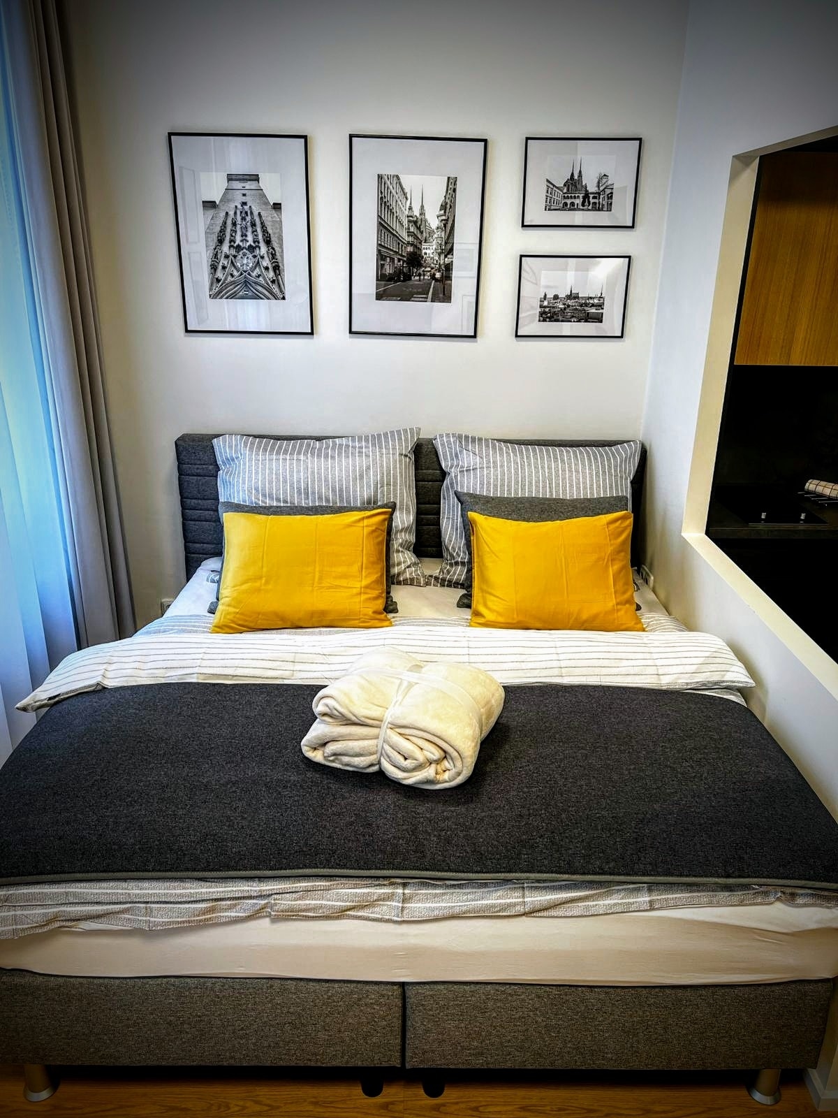 PASÁŽ KOLIŠTĚ est un élégant bâtiment multifonctionnel récemment rénové situé en plein centre de Brno (Théâtre Mahen à 280 m), à proximité de la gare routière et ferroviaire internationale. C'est stratégiquement avantageux pour tous nos voyageurs. L'appartement s'inspire de l'architecture de la ville de Brno et est équipé pour que vous vous sentiez à l'aise, en sécurité, comme chez vous :). Nous mettons l'accent sur la propreté, la sécurité et la communication conviviale. Options de petit déjeuner et de brunch selon le menu. Nous avons 11 autres appartements à proposer, contactez-nous !