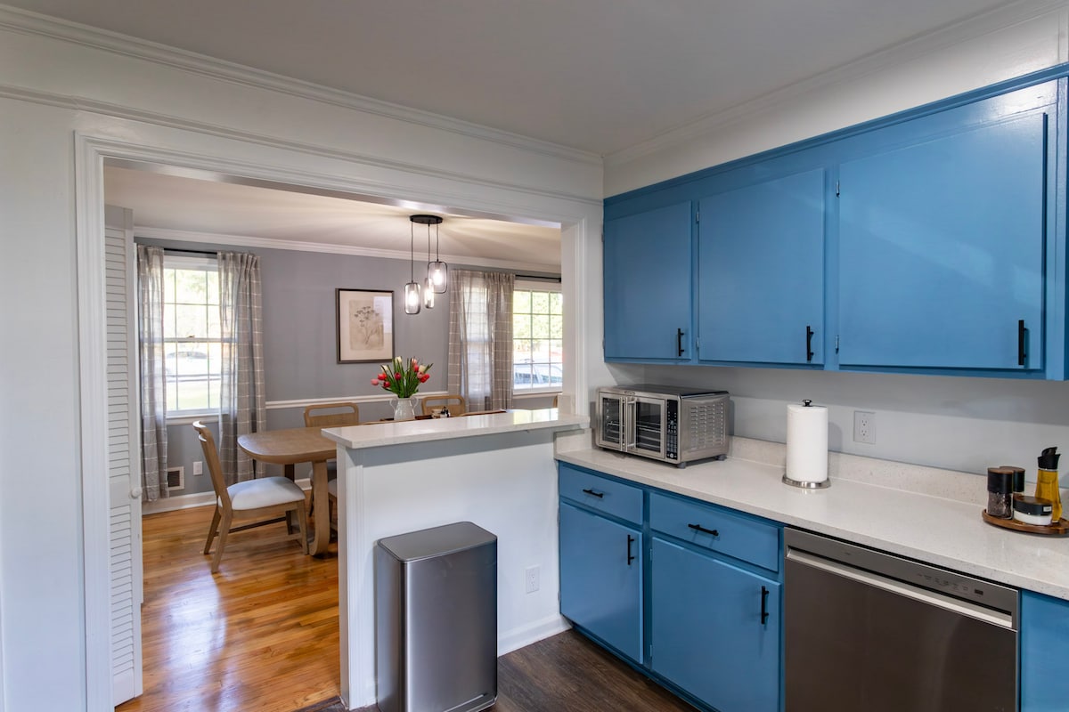 Bienvenue à la Golden Reflection Getaway, une retraite spacieuse et élégante parfaite pour les familles et les groupes. Profitez de cet espace familial spacieux de plus de 2 600 pieds carrés avec trois chambres à thème de luxe à l'étage et des options de couchage supplémentaires avec une salle de bain complète au niveau principal. Niché dans un quartier paisible, à seulement 7 minutes du cœur animé du centre-ville de Columbia et à 18 minutes de Fort Jackson. Détendez-vous, rechargez vos batteries et créez des souvenirs durables dans cette maison confortable et bien conçue.