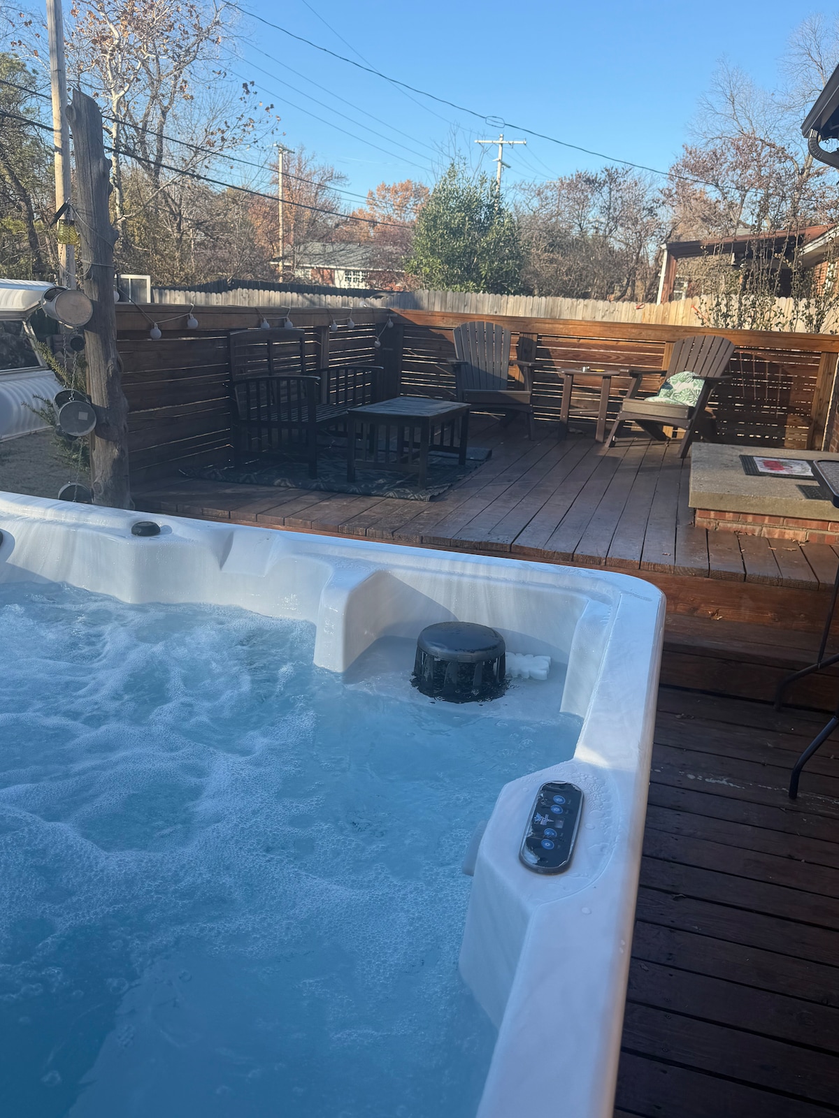 À quelques maisons des terrains de pickleball de Midtown, vous trouverez le Ivy Cottage. Le charme et le caractère sont le point culminant de cette adorable propriété. Le canapé sectionnel surdimensionné est l'endroit idéal pour vous détendre et regarder votre émission préférée sur la Smart TV. Ou servez le dîner dans la salle à manger avec des portes-fenêtres qui s'ouvrent sur le patio. À l'arrière, vous trouverez un jacuzzi, une télévision connectée, un canapé, une fléchette, un réfrigérateur à vin, un cornhole, etc. Des lits moelleux vous attendent quand vous êtes prêt à l'appeler une nuit. *La cheminée ne fonctionne pas.