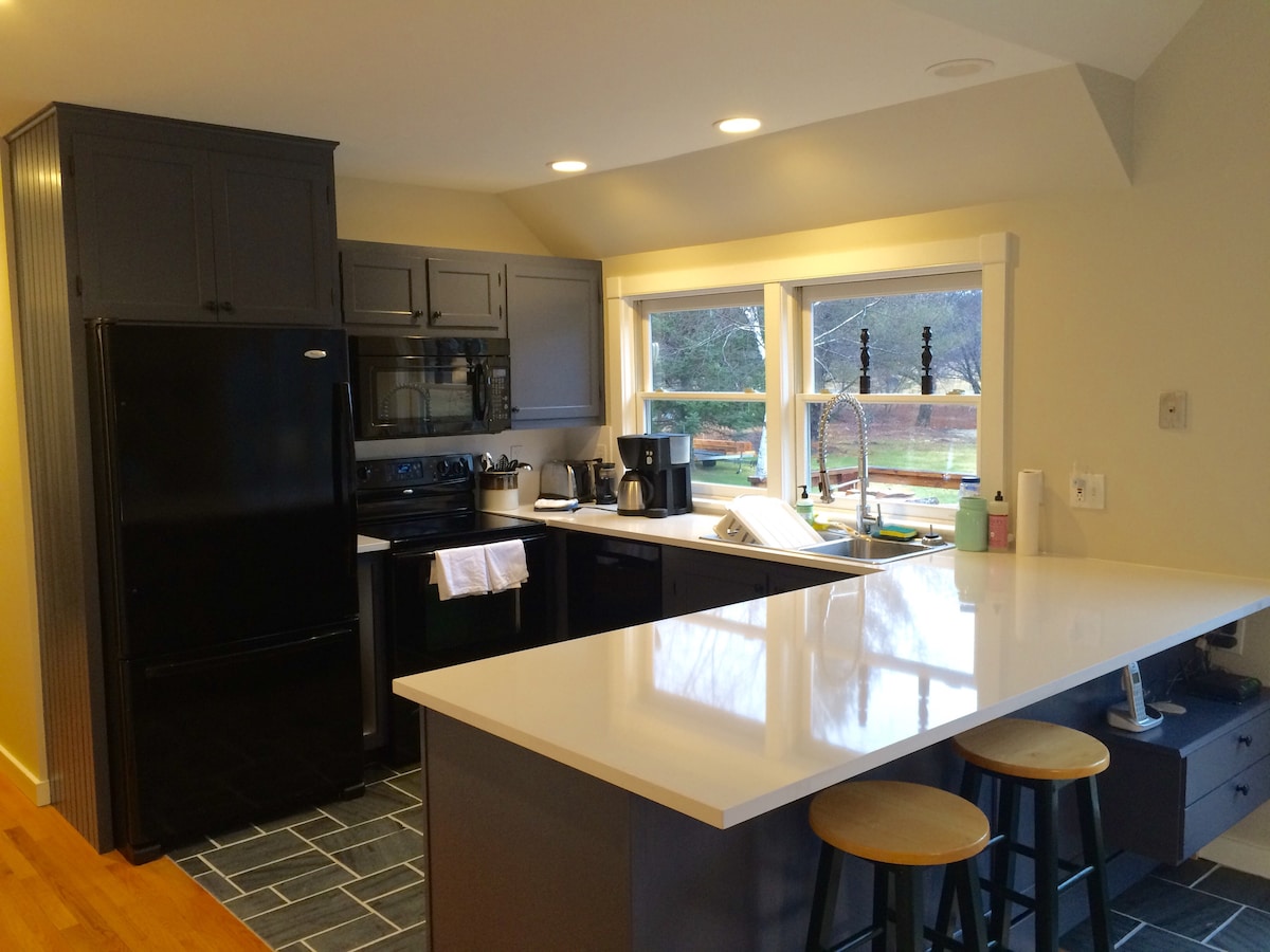 Notre confortable grange rénovée des années 1860 avec foyer au gaz donne sur la pittoresque West River de l'autre côté de la route. Attachée à notre maison dans le village de So. Londonderry, elle se trouve à quelques kilomètres des domaines skiables de Stratton, Bromley et Magic Mt.