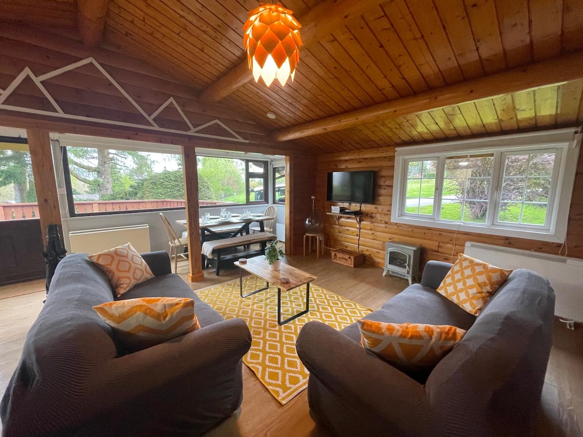 Escapades à Snowdonia : cabane en rondins pittoresque avec vues et Wi-Fi