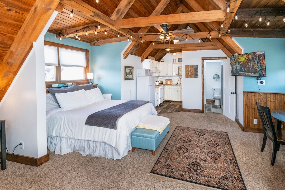 Ce studio du centre-ville de Nashville, dans l'Indiana, se trouve au-dessus des boutiques du magnifique comté de Brown. À 1 mile du Brown County Music Center et à quelques pas des boutiques, de la nourriture et des divertissements ; ce studio au 2e étage est parfait pour 2 personnes pour une escapade parfaite. Entouré de stationnement gratuit 24h/24 et 7j/7, vous allez très probablement garer votre voiture et l'oublier jusqu'à ce que vous rentriez chez vous !