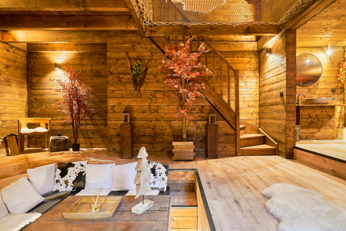 Chalet confortable avec jacuzzi et infrarouge.