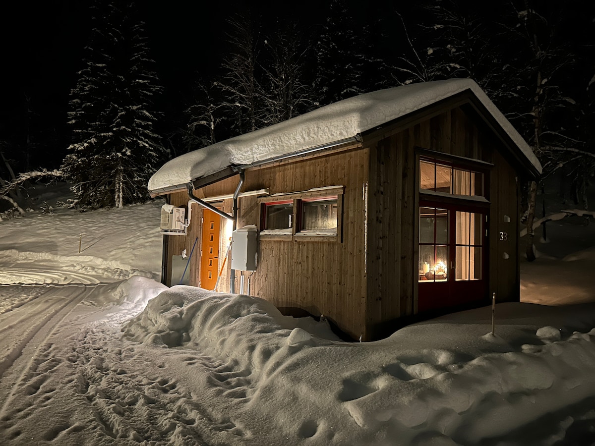 Chalet confortable avec sauna et sa propre zone de baignade, parfait pour un séjour relaxant à Funäsdalen. Le chalet fait 25 m² avec un standard simple et est situé en retrait en dessous de notre maison, entouré d'une belle nature et d'animaux sauvages. À seulement 30 mètres, vous trouverez votre propre lieu de baignade et votre propre patinoire. Il y a un sauna, une douche, une kitchenette, des toilettes et un canapé-lit (140 cm) pour deux personnes. Les chiens sont les bienvenus. À seulement 5 min de Funäsdalsberget et à 1,5 km du centre-ville de Funäsdalen.