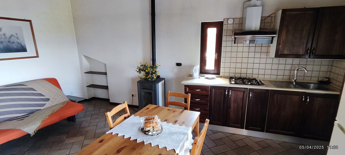 Élégante ferme nichée dans les collines du Monferrato. Le logement indépendant pour les clients, obtenu à partir de la grange, est complet avec salle à manger, salle de bain confortable et grande et lumineuse chambre avec un lit double et un lit une place et demie idéal pour un couple, une famille ou un groupe d'amis, jusqu'à 3/4 personnes. Depuis la chambre, vous pourrez profiter d'une vue panoramique enchanteresse, tout comme depuis la grande terrasse où nous servons le petit-déjeuner sur demande. Les espaces extérieurs de détente sont également à votre disposition.