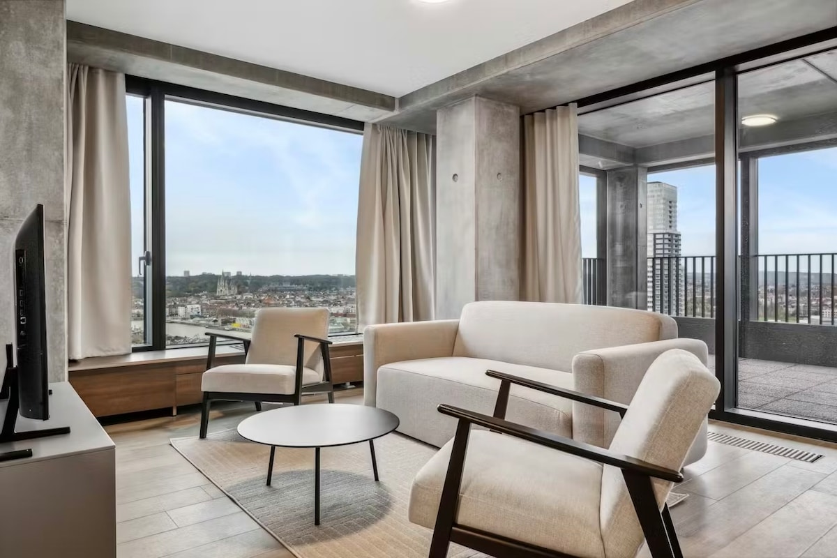 Penthouse moderne d'une chambre idéalement situé près du quartier européen de Bruxelles, du métro et de la Grand-Place. Profitez d'une vue imprenable à 360° sur la ville depuis deux terrasses privées avec un barbecue électrique. Les caractéristiques comprennent une cuisine entièrement équipée, une connexion Wi-Fi haut débit, une télévision connectée et un espace de travail dédié, idéal pour les séjours professionnels ou prolongés. Chambre calme, salle de bain élégante et arrivée autonome 24h/24 et 7j/7. Proche des transports en commun, des restaurants et des commerces