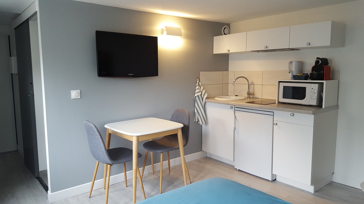 Studio de plain-pied de 20 M² entièrement indépendant, comprenant : - 1 cuisine équipée (1 frigo, 1 micro-ondes, 1 cafetière Senseo, 1 plaque vitrocéramique...) - 1 lit double - 1 salle de bain + toilettes - Wi-fi - Écran télé avec Chromecast. Quartier calme et agréable. Tous commerces à proximité à pied. Idéal pour un séjour touristique à proximité de Paris. Adapté pour les séjours professionnels. Proximité CEA Bruyères-Le-Châtel (3 mn en bus/10 mn à pied). Proche ligne de bus gare RER C.