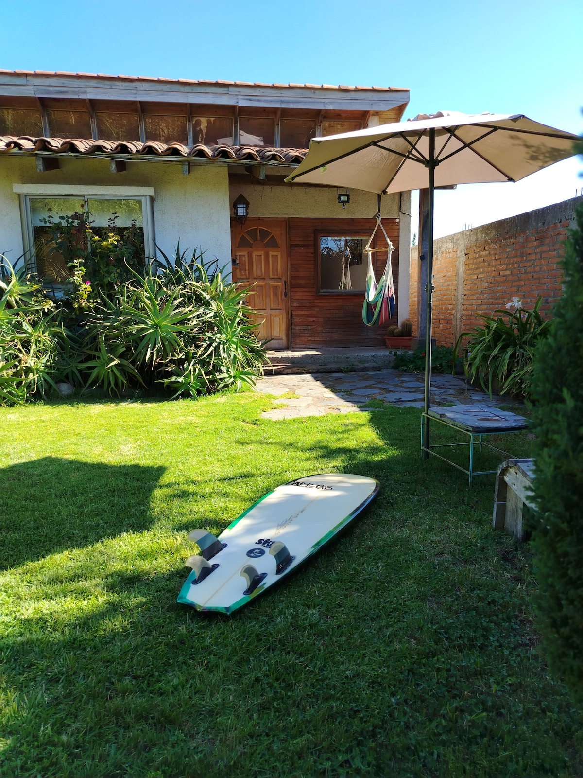 Le refuge de la paix est un lieu unique pour venir se reposer, se connecter avec la nature et profiter de la brise de la mer. La maison dispose d'un parking privé, d'une grande cour pour jouer, faire du sport, d'un secteur de feu de camp, d'une terrasse pour pratiquer le yoga ou le trx, de se reposer dans le hamac et de bronzer. Vous disposez également d'une douche extérieure pour enlever le costume d'eau après la séance. Il est situé à seulement 2 minutes de la plage de la plage et de l'une des meilleures vagues pour pratiquer le surf.