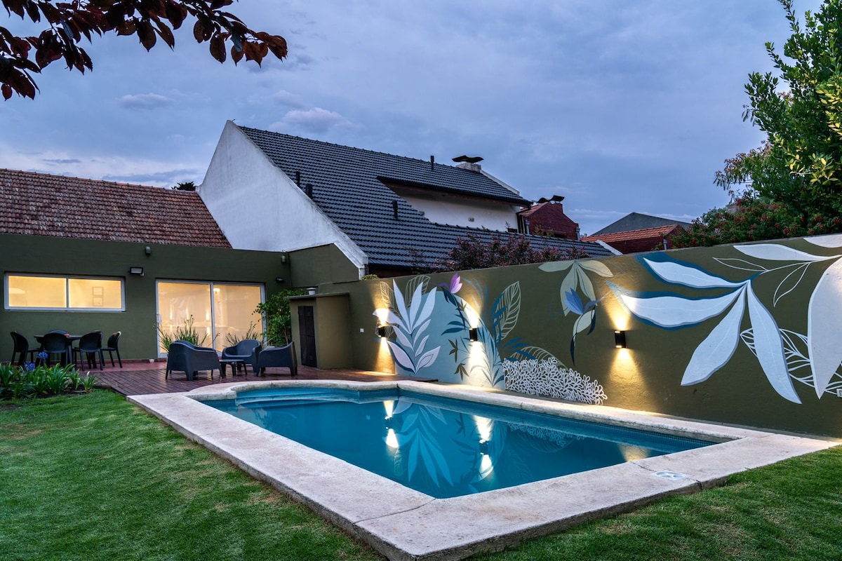 Belle, spacieuse et lumineuse Maison à quelques mètres de la rue Alem et du Golf Playa Grande. Résidentiel et calme Quartier San Carlos.( Los Troncos /Playa Grande) Peut accueillir jusqu'à 8/10 personnes réparties en 3 et 1/2 chambres en PA. AA Chaudière et radiateurs en hiver. Piscine chauffée (UNIQUEMENT en été) terrasse et parc. Grill extérieur Entrée p 2 voitures Entretien jardin et piscine chauffée inclus. (bac à piles et jardinier loués par l'hôtesse)